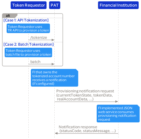 PAT uses standardized message flows to deliver notifications to Financial Institutions and Token Requestors. These flows ensure reliable and consistent notification delivery.