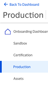 In order to use the products in the certification or production environment, complete the steps on the "Onboarding Dashboard" of your project. Visit Going Live for an overview of the processes to be completed before the APIs can be used in the production environment.